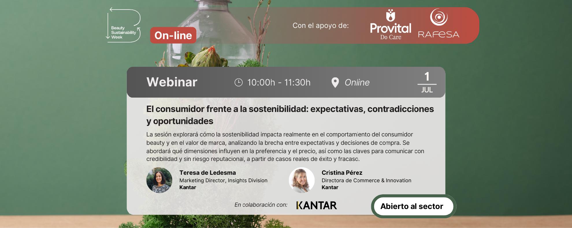 Este evento forma parte de la Beauty Sustainability Week 2026, la semana de encuentro donde el sector beauty define cómo pasar de la sostenibilidad declarada a la sostenibilidad demostrable.
